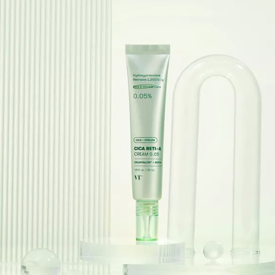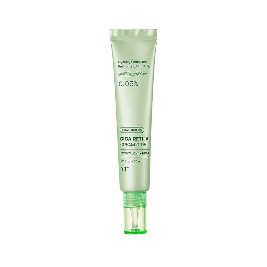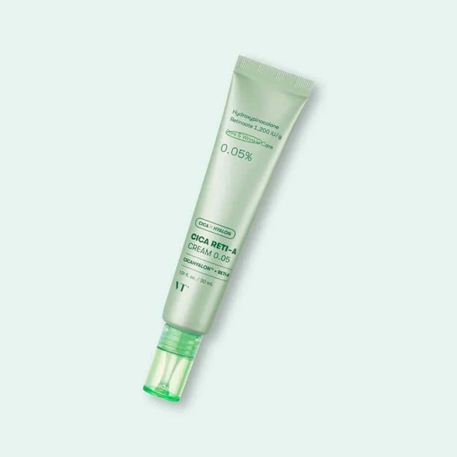 O Cica Reti-A Creme facial da VT Cosmetics combina a suavidade da Cica (complexo à base de Centella Asiatica) com um retinoide avançado de 0,05% (Hydroxypinacolone Retinoate), oferecendo um cuidado antienvelhecimento eficaz para a pele sensível.