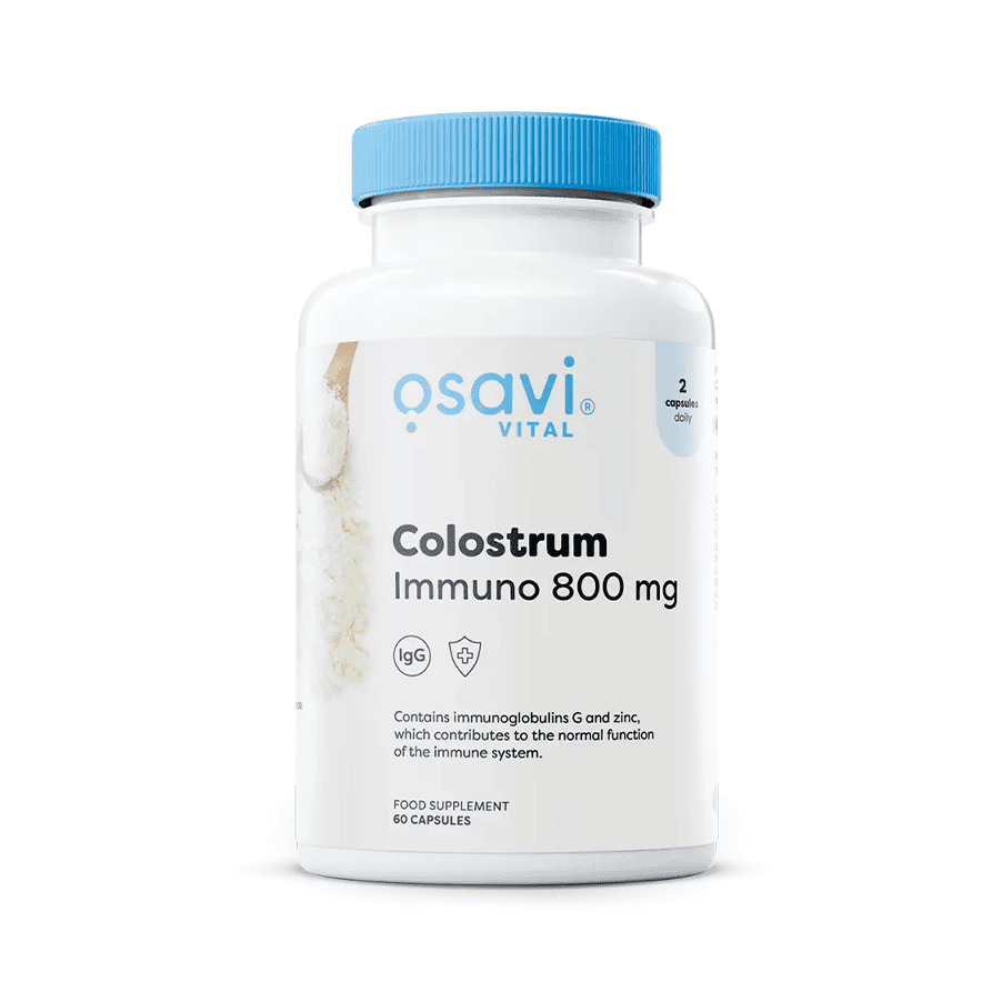 O Colostrum Immuno 800 mg da Osavi apresenta cápsulas rigorosamente formuladas para potenciar as tuas defesas naturais. Cada dose diária de 2 cápsulas fornece 800 mg de colostro bovino, padronizado para conter no mínimo 144 mg de imunoglobulinas G, essenciais para combater bactérias e vírus e reforçar a tua resposta imunitário. Paralelamente, oferece 15 mg de zinco na forma de gluconato, correspondendo a 150% das necessidades diárias, o que contribui para a imunidade, proteção antioxidante e manutenção da saúde da pele, unhas, cabelo e ossos.