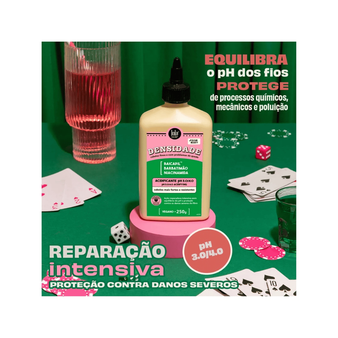 Em suma, Densidade Acidificante da Lola Cosmetics é o tratamento perfeito para recuperar a força, o brilho e a maciez. O resultado é um cabelo mais saudável, nutrido e cheio de vida.