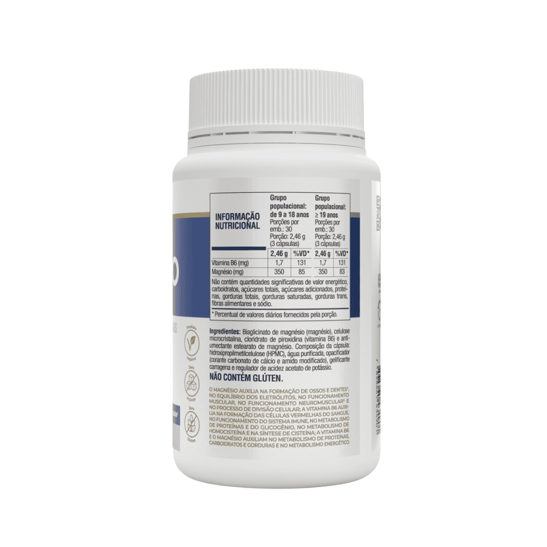- 350 mg de bisglicinato de magnésio por porção;