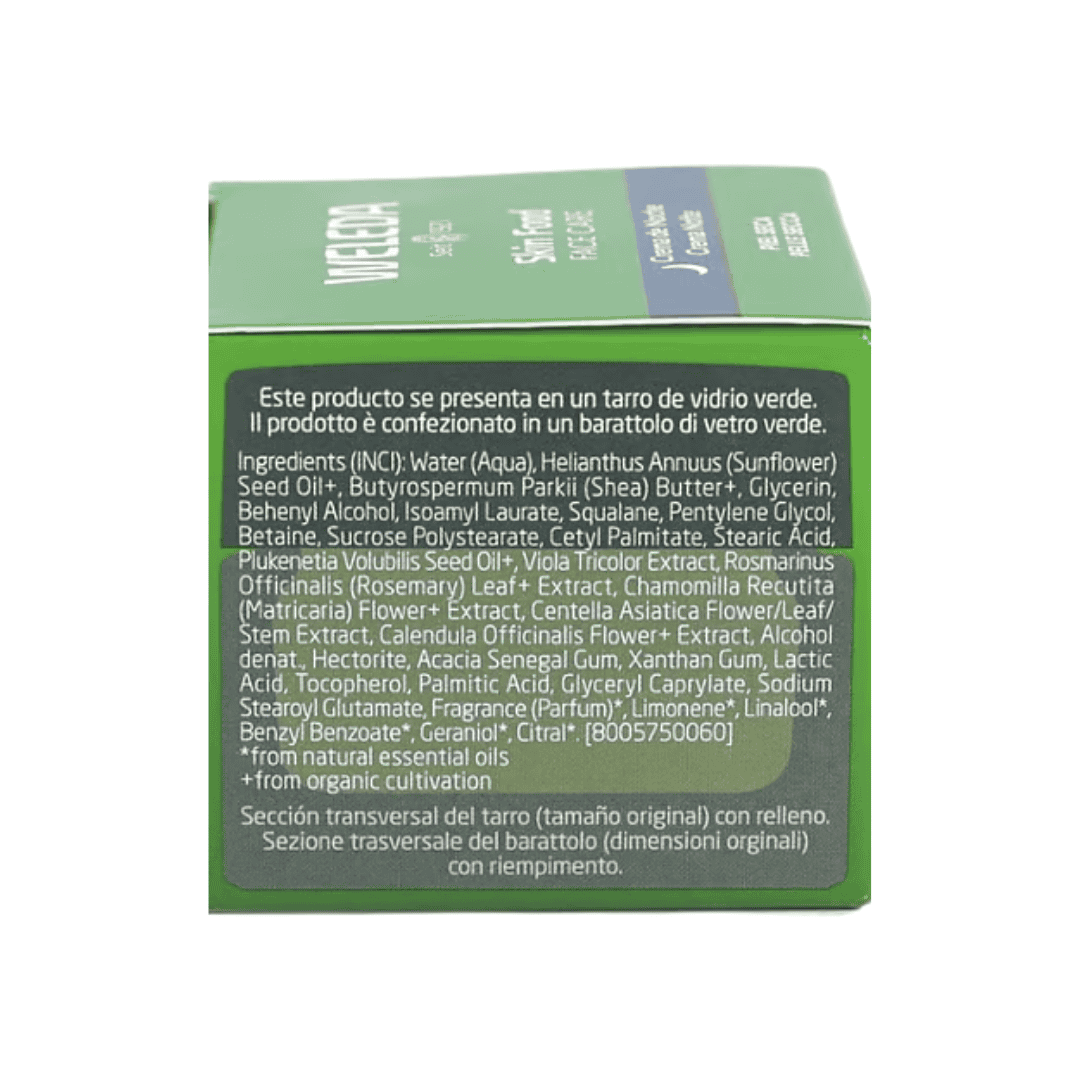 Água (Aqua), óleo de semente de Helianthus Annuus (girassol), manteiga de Butyrospermum Parkii (karité), glicerina, álcool beenílico, laurato de isoamila, esqualano, pentilenoglicol, betaína, poliestearato de sacarose, ácido esteárico, óleo de semente de Plukenetia Volubilis, extrato de Viola Tricolor, extrato de folha de Rosmarinus Officinalis (alecrim), extrato de flor de Chamomilla Recutita (camomila), extrato de flor/folha/caule de Centella Asiatica, extrato de flor de Calendula Officinalis, álcool, hectorita, goma de acácia-do-senegal, ácido lático, goma xantana, tocoferol, ácido palmítico, caprilato de glicerila, palmitato de cetila, estearoil glutamato de sódio, fragrância (parfum)*, limoneno*, linalol*, benzoato de benzila*, geraniol*, citral*.