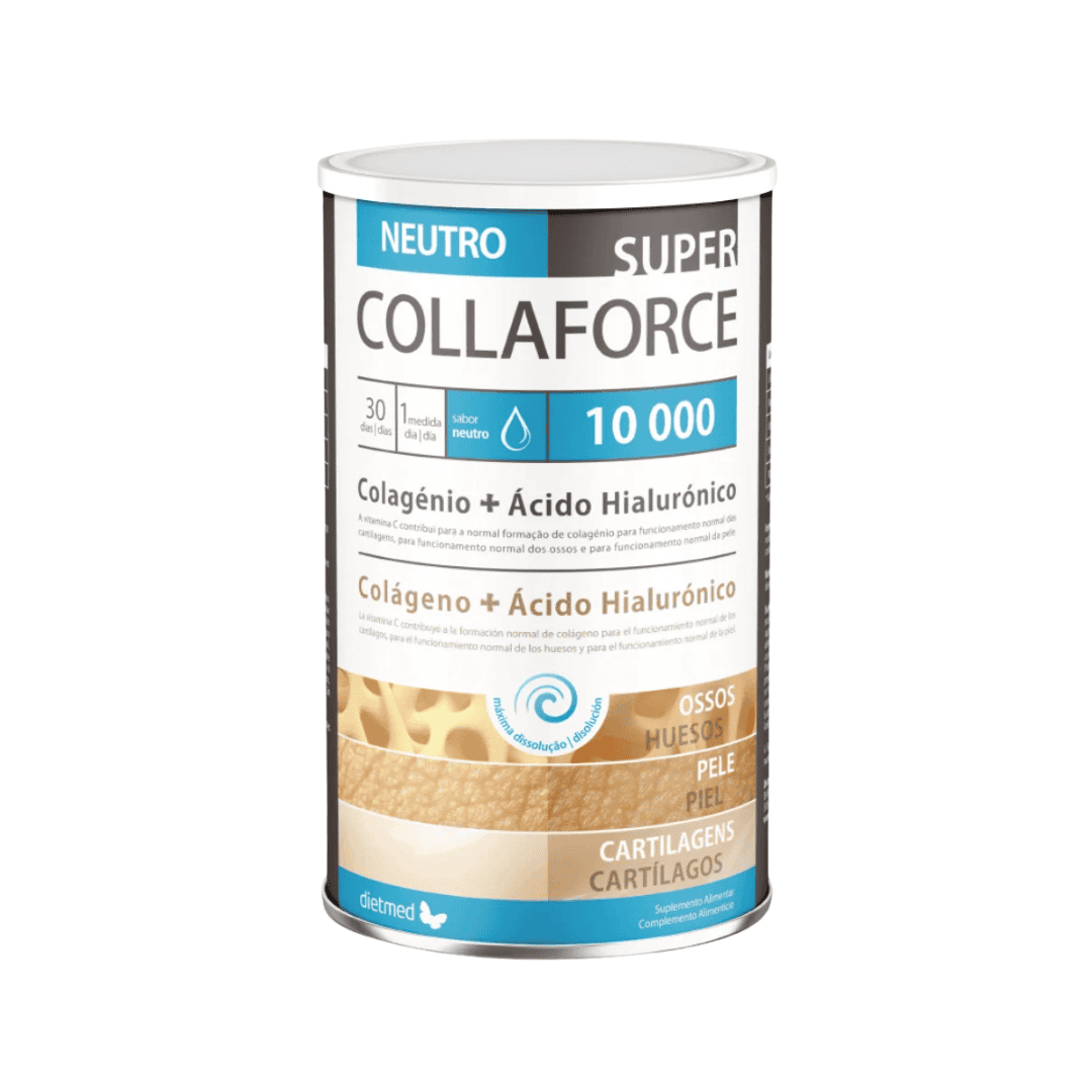 O Super Collaforce 10000mg Neutro da Dietmed é um suplemento alimentar premium desenvolvido para promover a saúde das articulações, ossos, músculos e pele. A sua fórmula avançada combina colagénio hidrolisado tipo I e II em alta concentração, garantindo uma regeneração profunda dos tecidos. Assim, contribui para a manutenção da flexibilidade, firmeza e resistência do corpo.